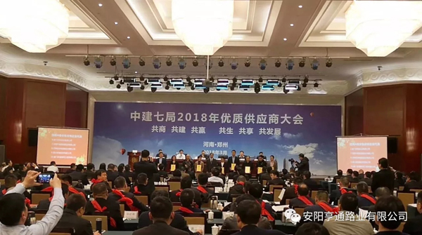 在2018年3月8日中建七局交通公司“2018年度生產推進會暨2017年度供應商大會”上,安陽亨通路業(yè)有限公司又獲得了中建七局交通公司頒發(fā)的“優(yōu) 秀合作企業(yè)”的榮譽稱號。